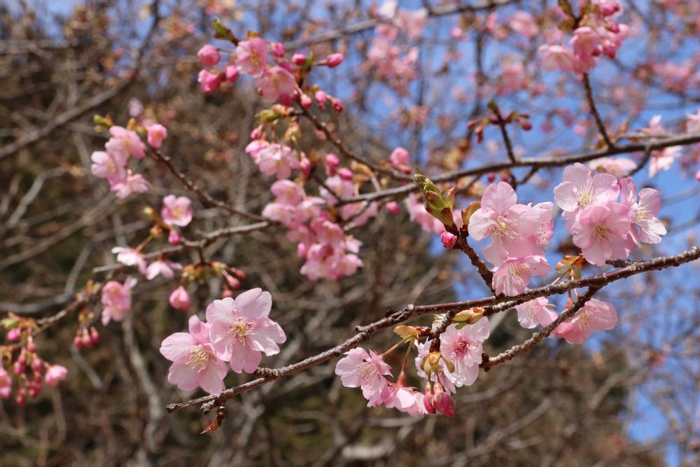おおいゆめの里の河津桜ちゃん🌸🌸🌸先週日曜日はまだ2分咲き程度だったかなぁ〜。メジロちゃんたちが楽しそうに蜜チューチュー🎶