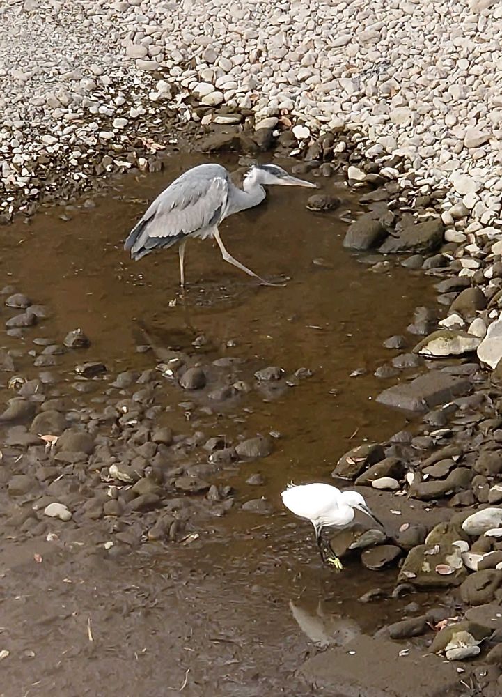 雨が降らなくて、川の水がかれてきましたが、いつものようにサギ親子が餌探ししていました😀 雨は好きではありませんが、サギ親子のためにも、雨乞いせねば🙏