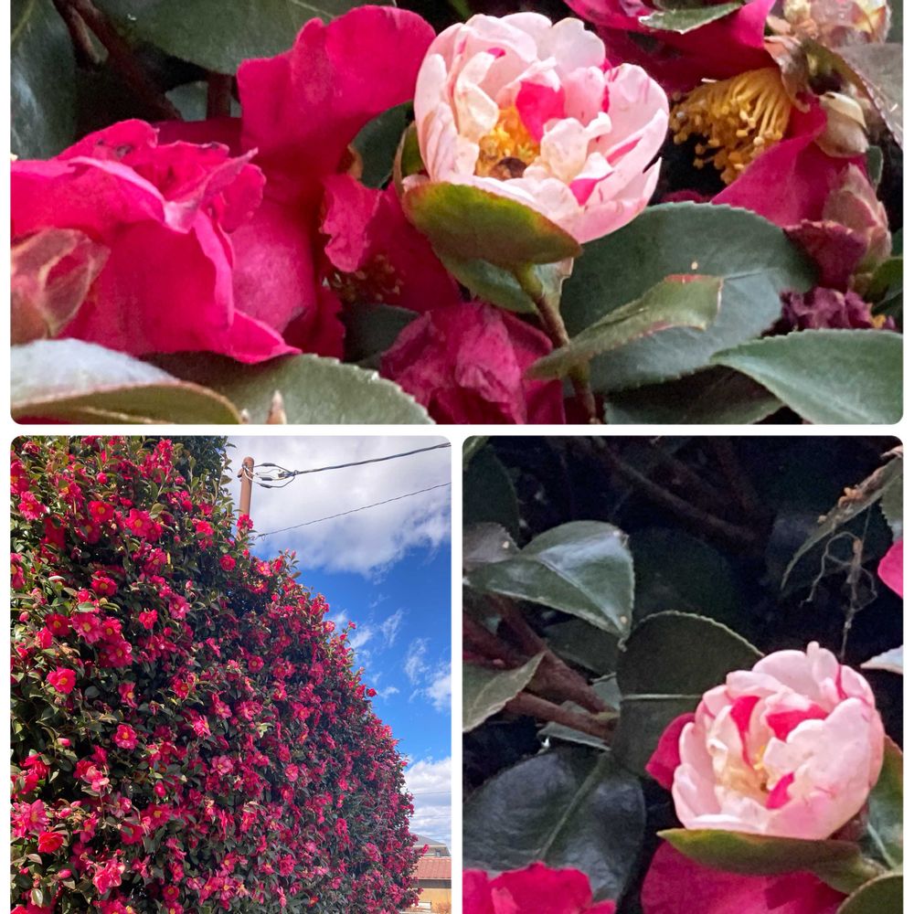 1枚目 なんと左下のサザンカの垣根に一輪だけ白い❔花が!!こんなこと初めてです!?