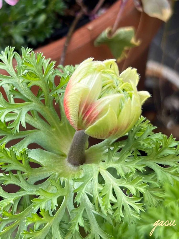 ③まだ去年、一昨年の球根は芽が出て葉が伸び始めたばかりなので去年3/13の投稿から八重咲きのオーロラ♪ アネモネ球根ごちゃ混ぜに保管して球根だけの鉢や寄せ植えに忍ばせたので‥何処かで咲くはず🤭
