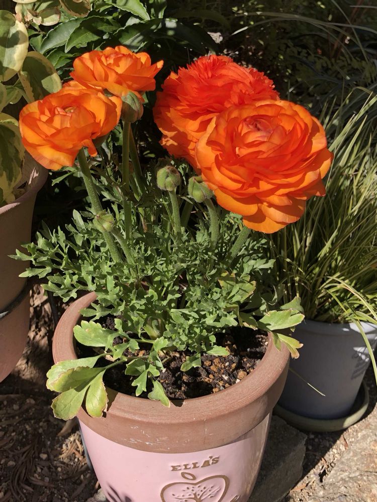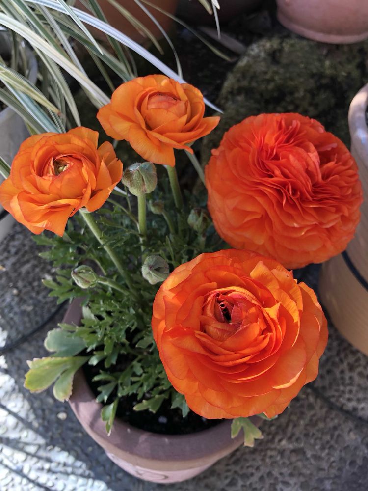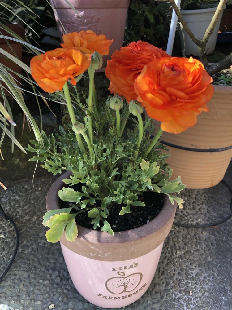 オレンジ色のラナンキュラス さん🧡一番花も1ヶ月経つのに変わらずの花姿✨お庭をパッと華やかにしてくれています´ ³`°) ♬︎*.:*