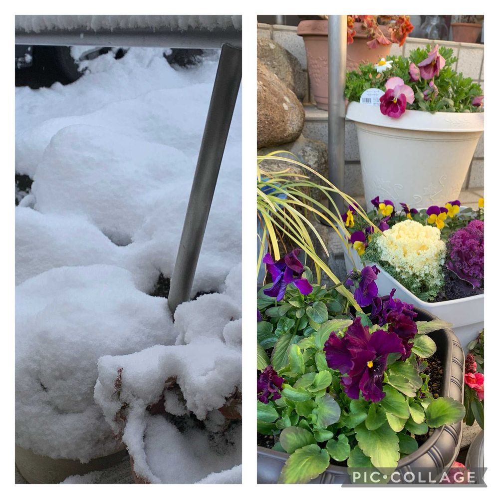 ほんとにパンジービオラは強い子ですね🌸雪は溶けましたか?