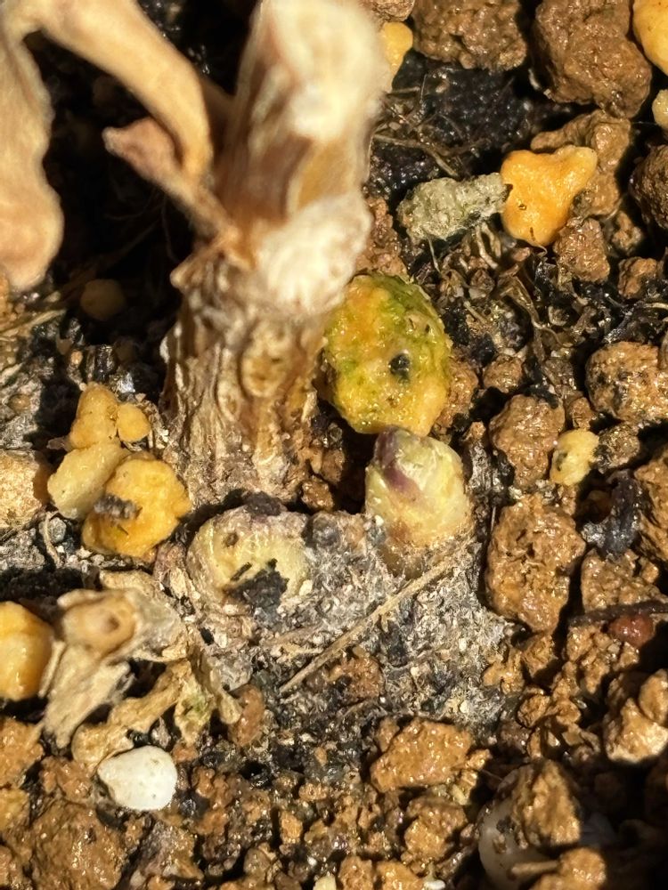 枯れ葉のままずっと放置してあったのでどうなったかなぁと思い見てみたら芽が出てました (✿˘˘✿)