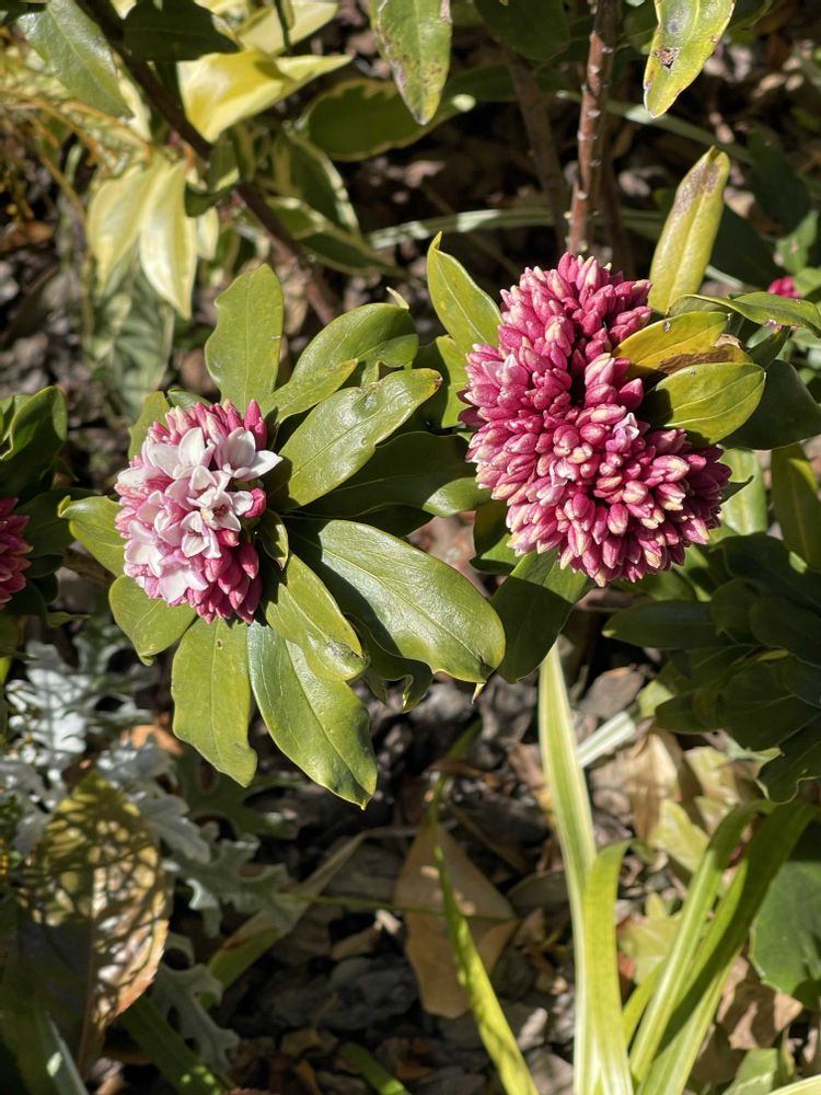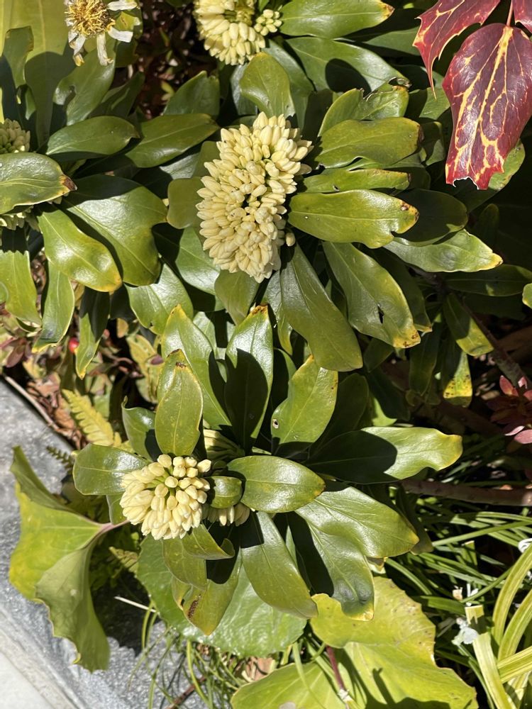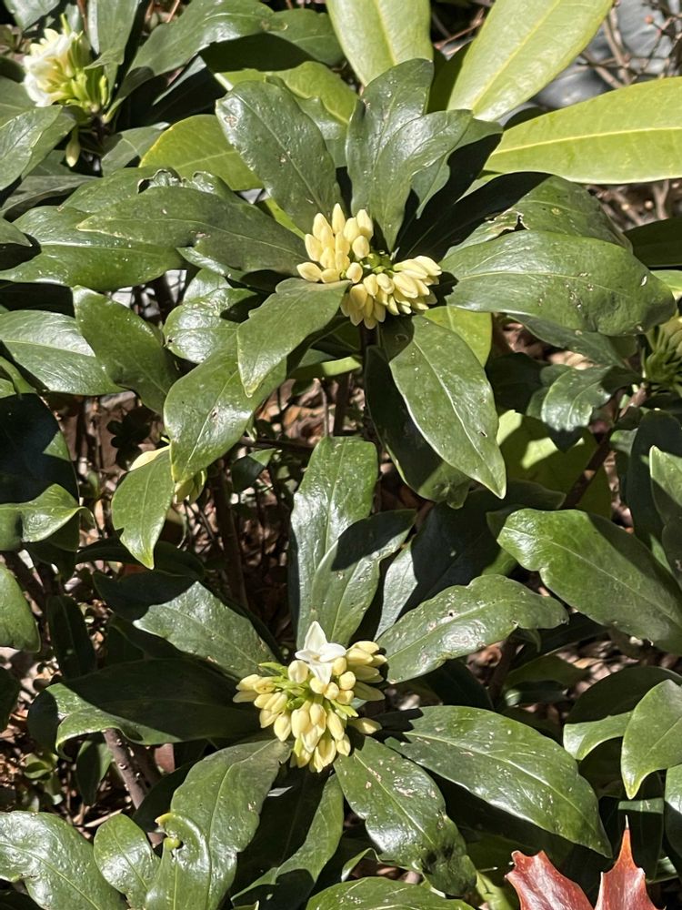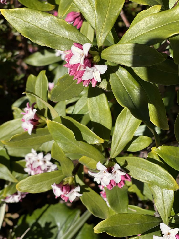 近くのマンション庭に沈丁花の赤花と白花が咲いていてとても良い香りがします。