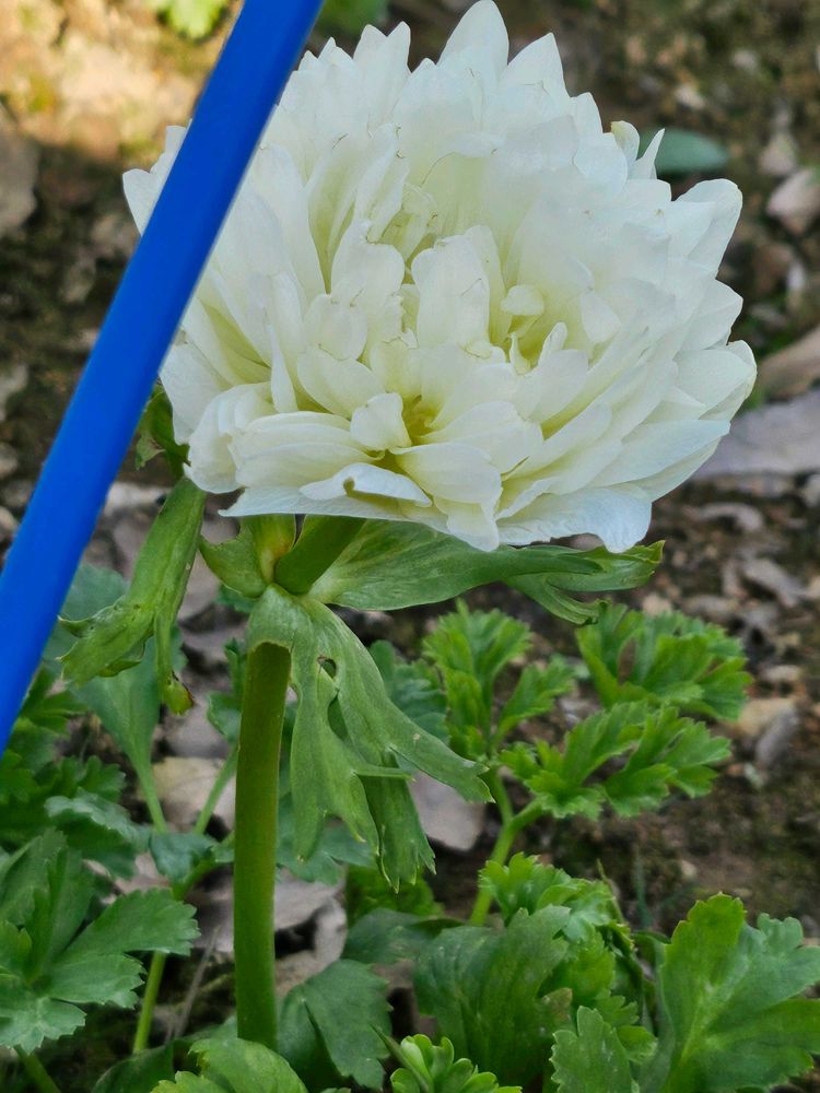 寒さ避けのビニールカバーが外されてて、八重のアネモネがお顔だしてました🤍