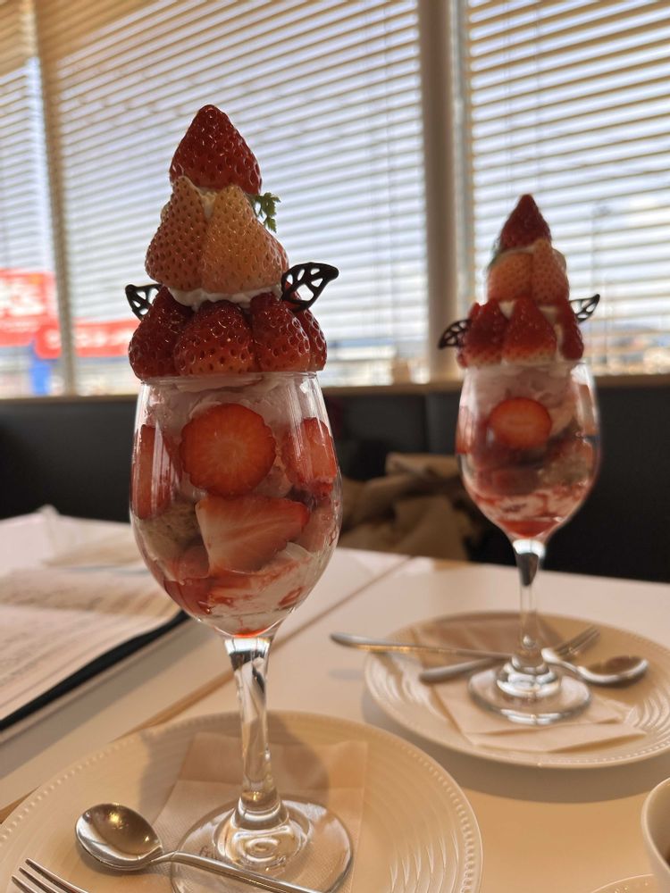 ⑤昨日お友達といつものカフェで🍓パフェ😋