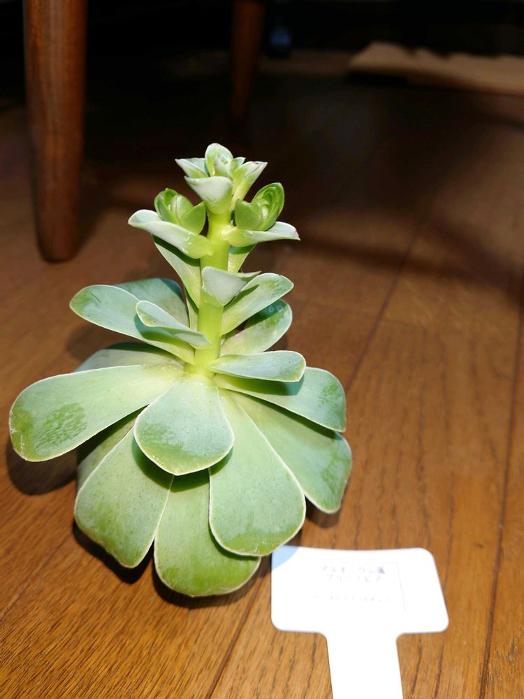 秋から今まで小さい鉢から変えずにいたグリーノビア。徒長の先に芽が出てて驚いている