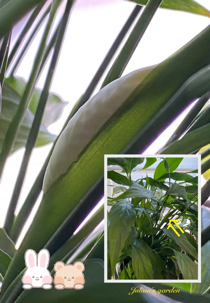 ①スパティフィラムのお花が2週間かかってようやく開きました🤍💚