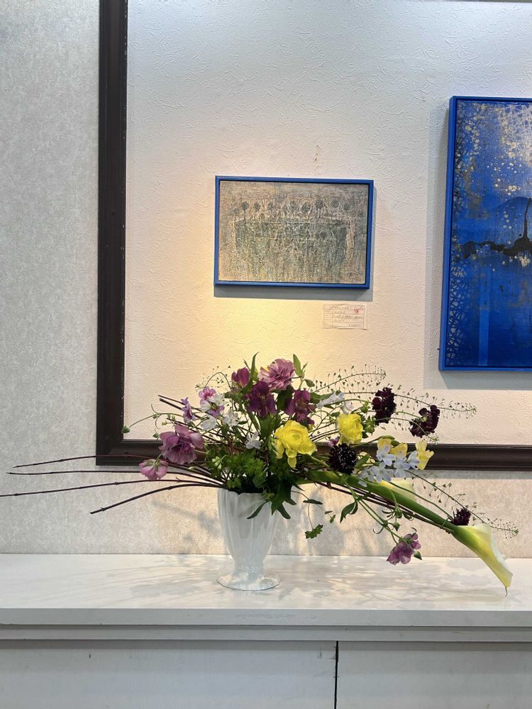 3枚目は、お友達が編んでくれたレースの花瓶敷き(*≧∀≦*)💕と、レッスンで持ち帰ってきた短いお花達のアレンジをお部屋に✨