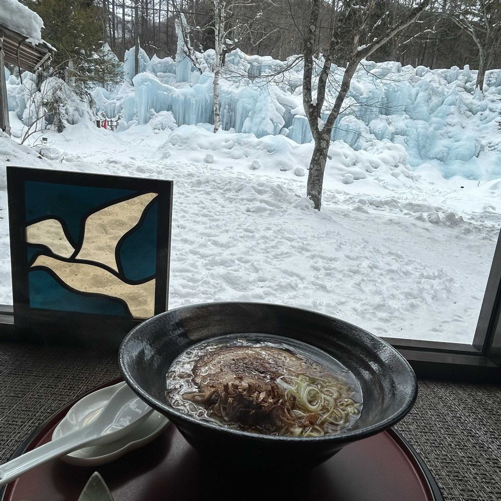 森の中の喫茶店では、飛騨高山ラーメンを食べたね。