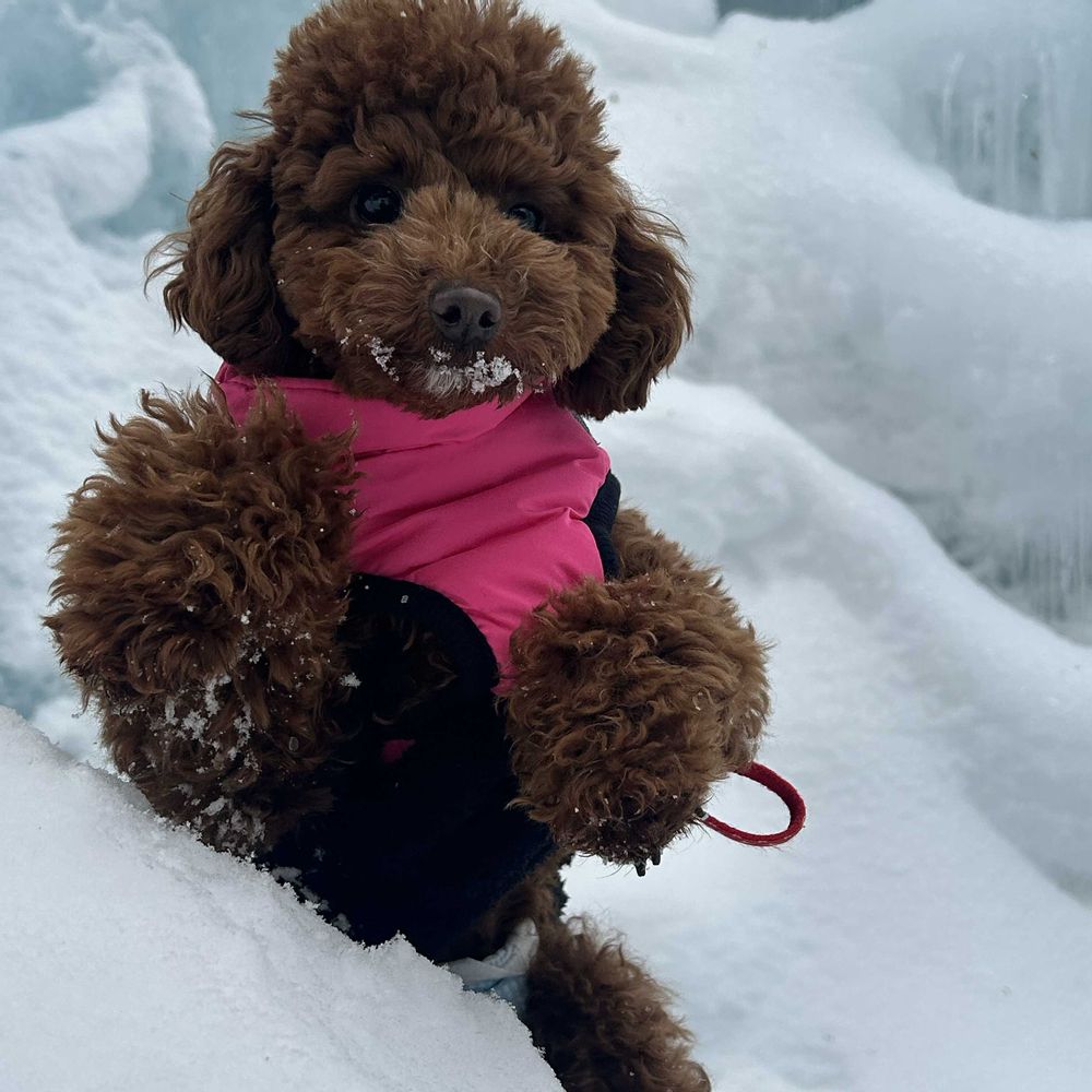 初めての雪の中でのお散歩、楽しかったようです🙂