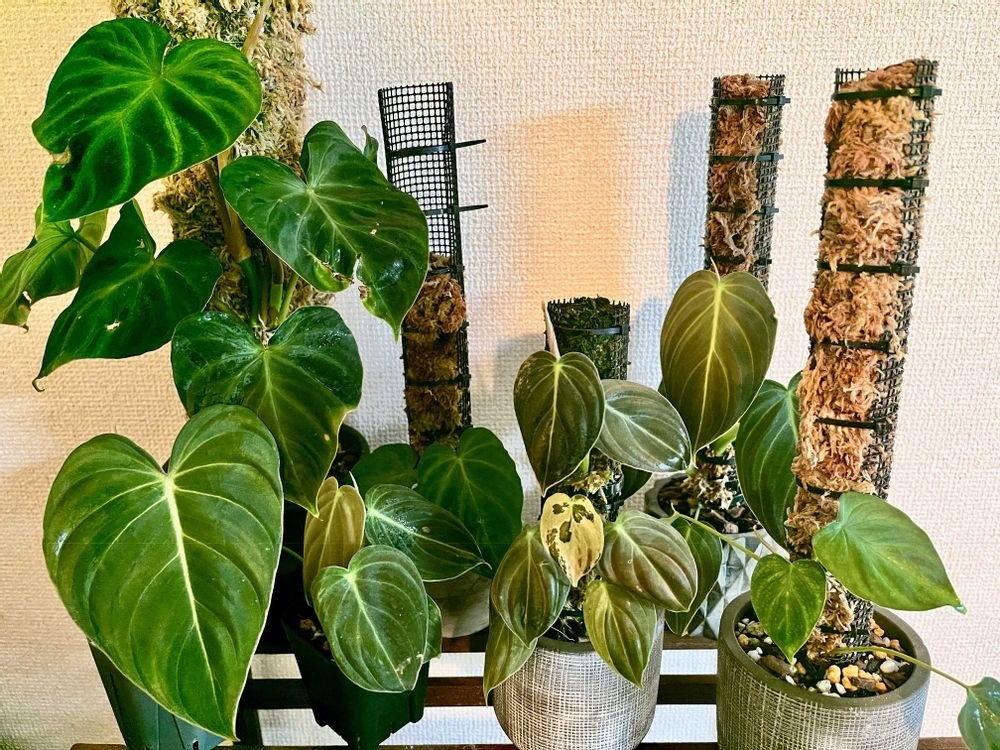 ダイソーの鉢とダイソーのモスポールで仕立てたフィロデンドロンたち🪴