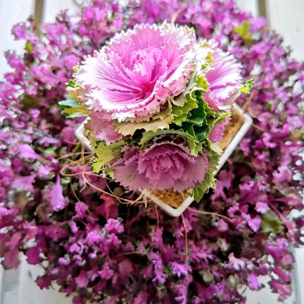 周りには約400粒の種蒔き。育つ環境でこんなに変わる葉牡丹。不思議で、可愛い💕