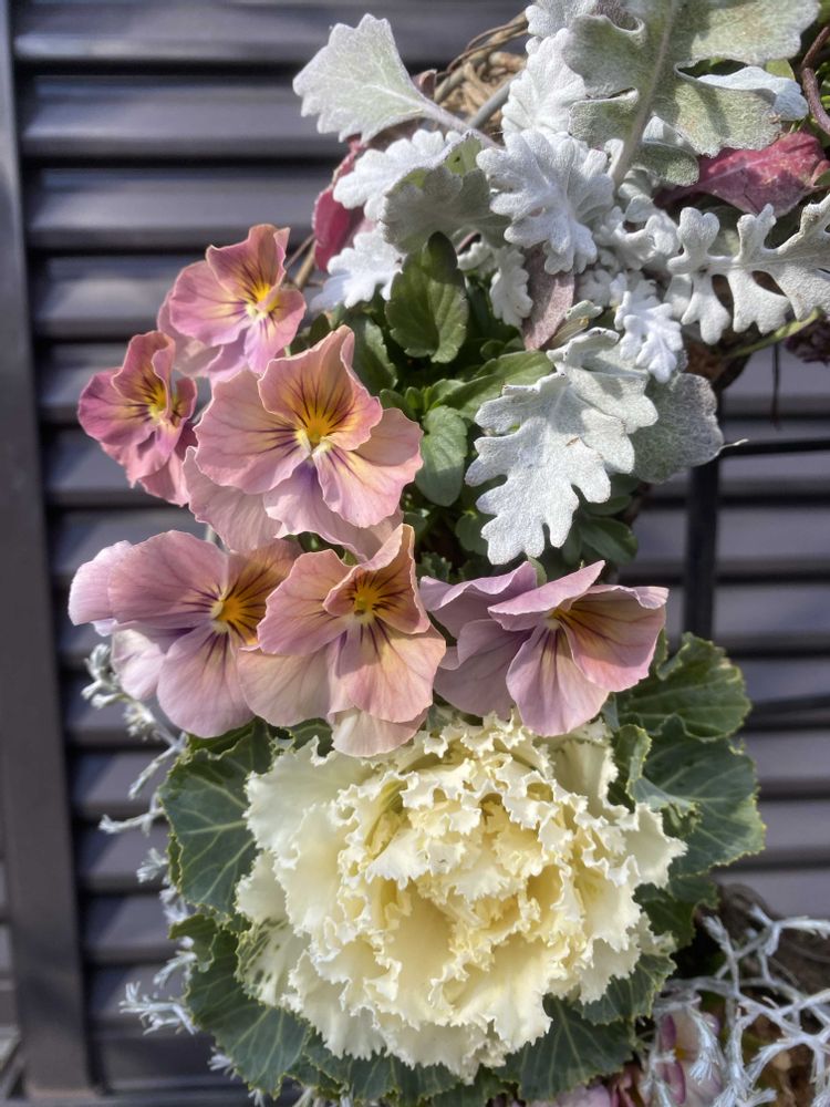 リースの寄せ植え素敵なカラーで癒されます🌸🌼🌿