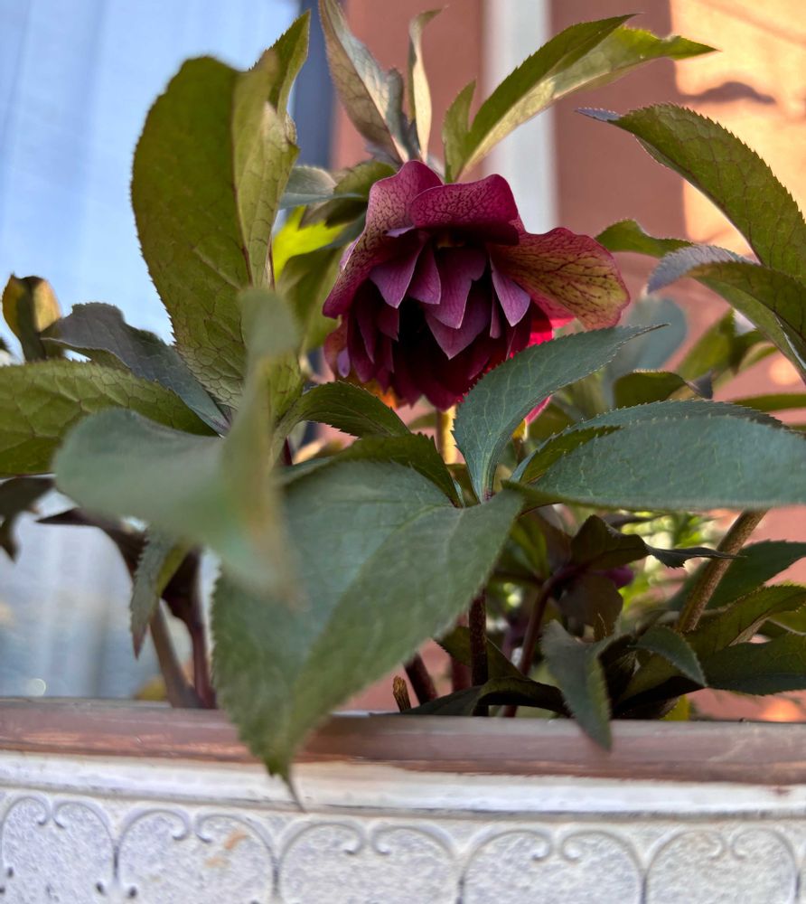 ❷❸❹去年株分けしたクリスマスローズお隣さんから頂いた名無しさん赤紫のお花が咲きました