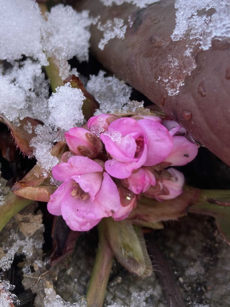 私もGSで知ってからキョロキョロ…雪道に薄っすらピンクの花を見てビックリ🫢