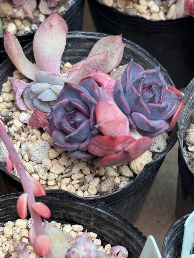 紫色の子はもうダメっぽいやつをライトに当ててたら子株出たんです❗️直接見ると黒紫ぽいです😊今2cm弱かな、小さいけど立派に紅葉中です🎶