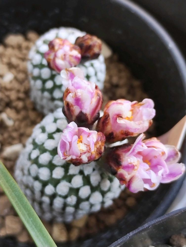 そして先日蕾で投稿したギムノカクタス白鯱と薔薇丸開花しました❣️