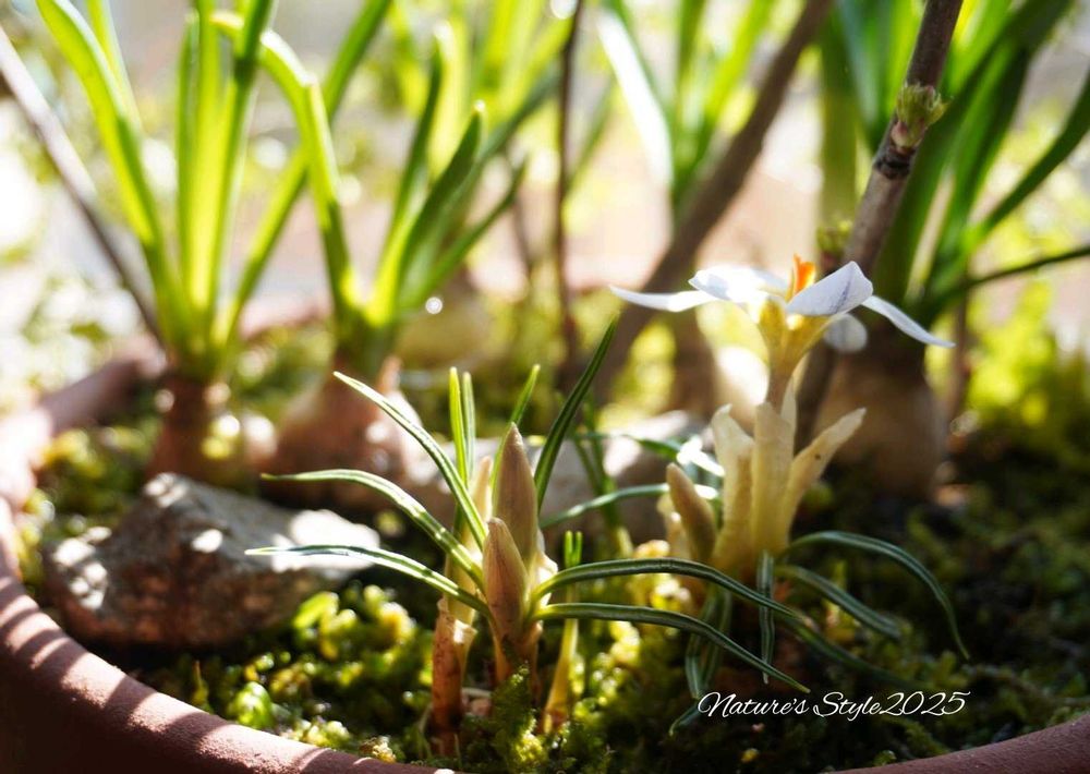 小さな苔庭はクロッカスに続きミニ水仙も咲いてきましたが、庭はまだまだなんですよ😅