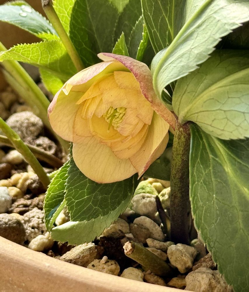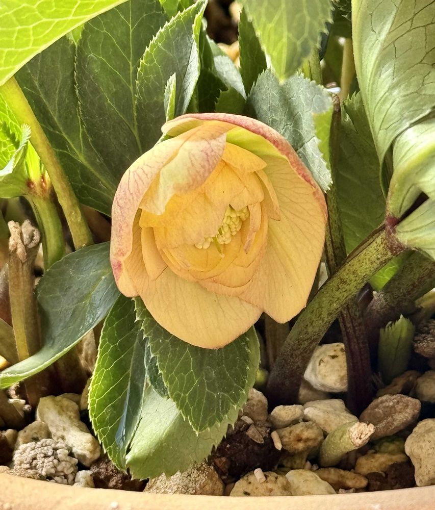 ウィンターシンフォニーのアプリコットダブル。昨年は咲かず、今年はずいぶん下になりましたがやっと咲きました✨