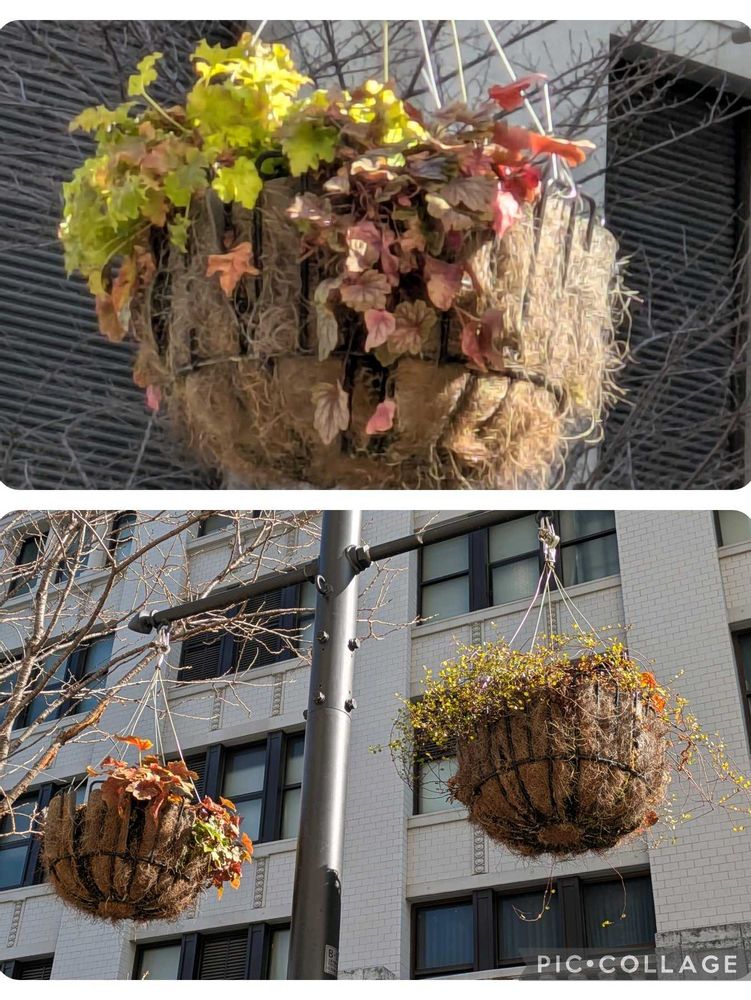 日本橋三越の玄関のお花,もうすぐ咲きそうサクラ,三越近くのハンギングフラワーの投稿画像