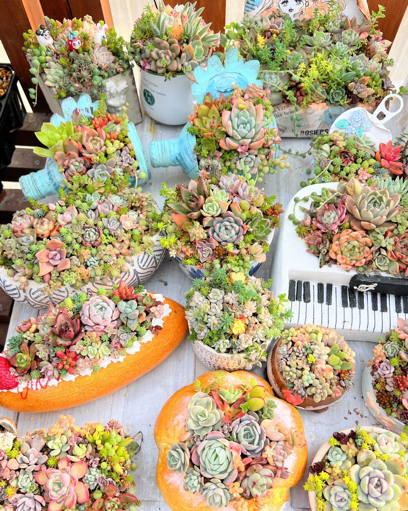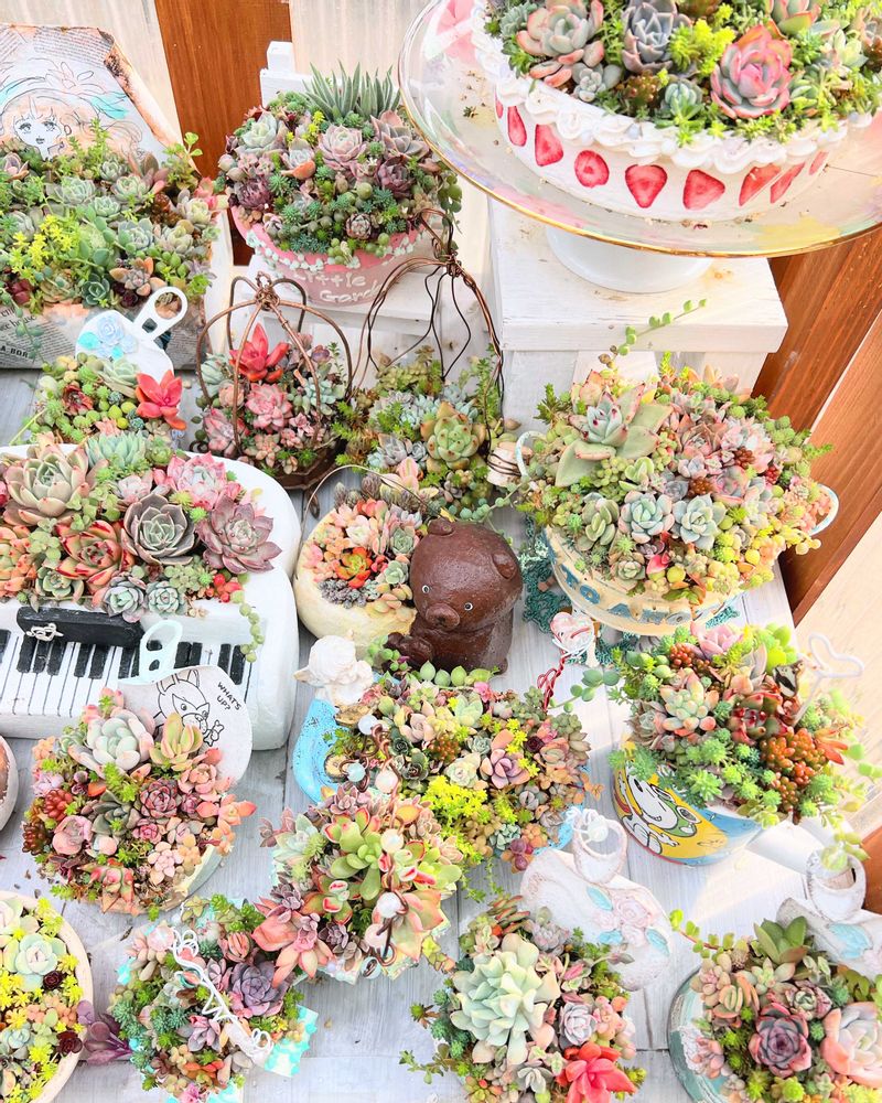 うららさんち😍🎶多肉屋さんみたい✨💞素敵な寄せ植えいっぱい並び目👀⁉️見入ってしまいました😆🎵💞可愛すぎる💗
