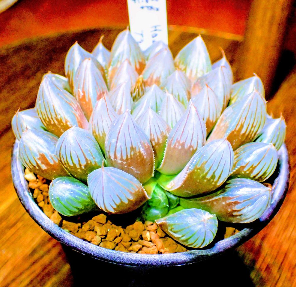 ハオルチア、このこの他にも暗黒竜て子がいるのですが、暗黒竜は硬葉ですが育て方次第で葉が緑から黒に変わっていく面白いハオルチアです😊