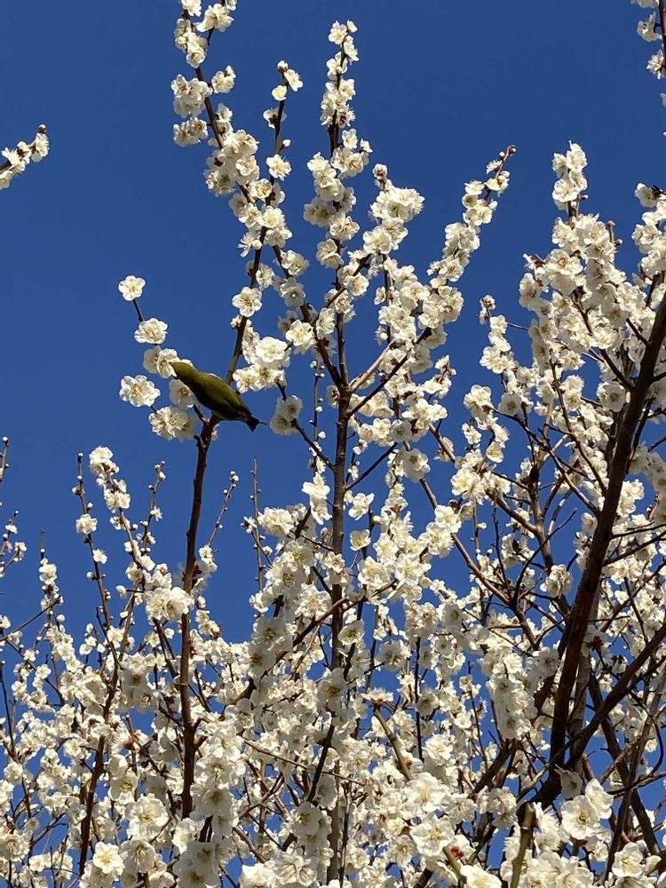 そろそろ開花しているかな、と立ち寄った都立公園の河津桜はまだ開き始めたばかり。満開の白梅を見上げると2羽のメジロが蜜を吸いに来ていました。写真を撮っている私を気にも留めないので、可愛い姿を楽しませてもらいました😊💓