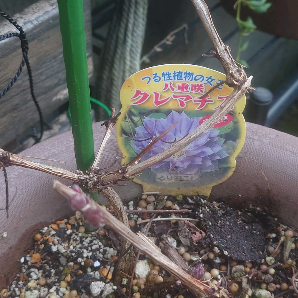④クレマチスマクロペタラウェッセルトン🌱✨暑さに弱いと聞いていたけど、暑い環境でもスパルタに育てるワタクシ🤣無事に芽吹いてます🤭💦