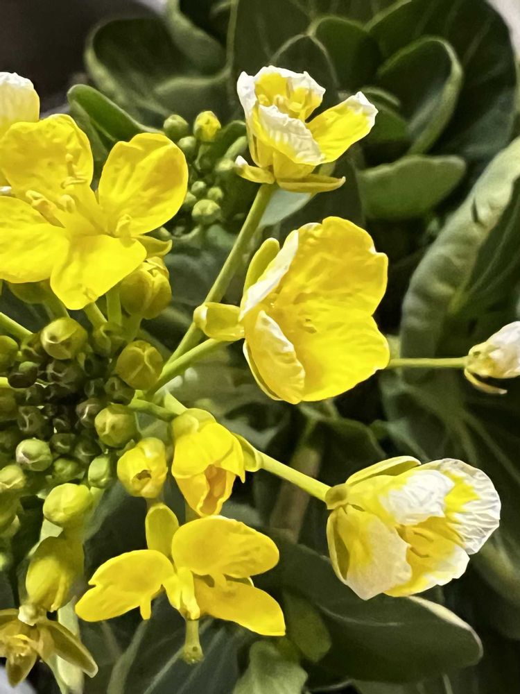 青梗菜の花ってあまり見たこと無いですが、ところどころ白い筋が入っているのが面白いですねー