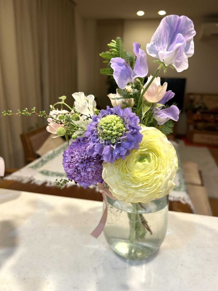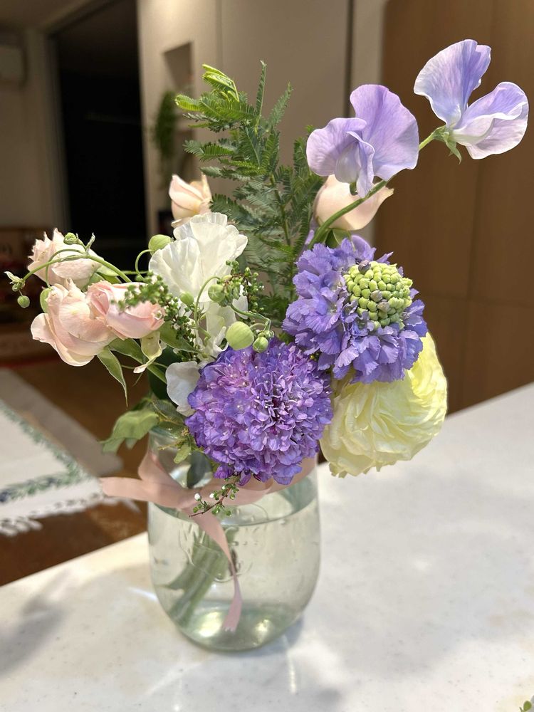優しさの詰まった可愛くて素敵な花束でした✨同じ薄紫ですね〜💜