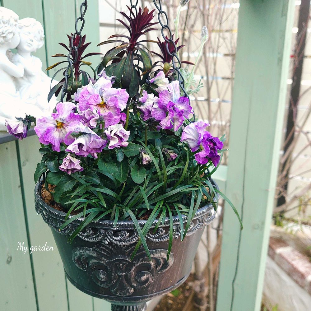 可愛い吊り下げれるプランターを買ったのでフェデネージュの寄せ植えを植え替えてみました。なかなかゴージャスで可愛いです😊
