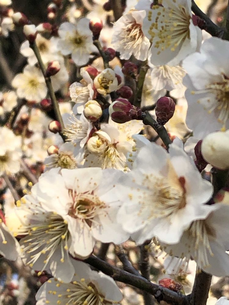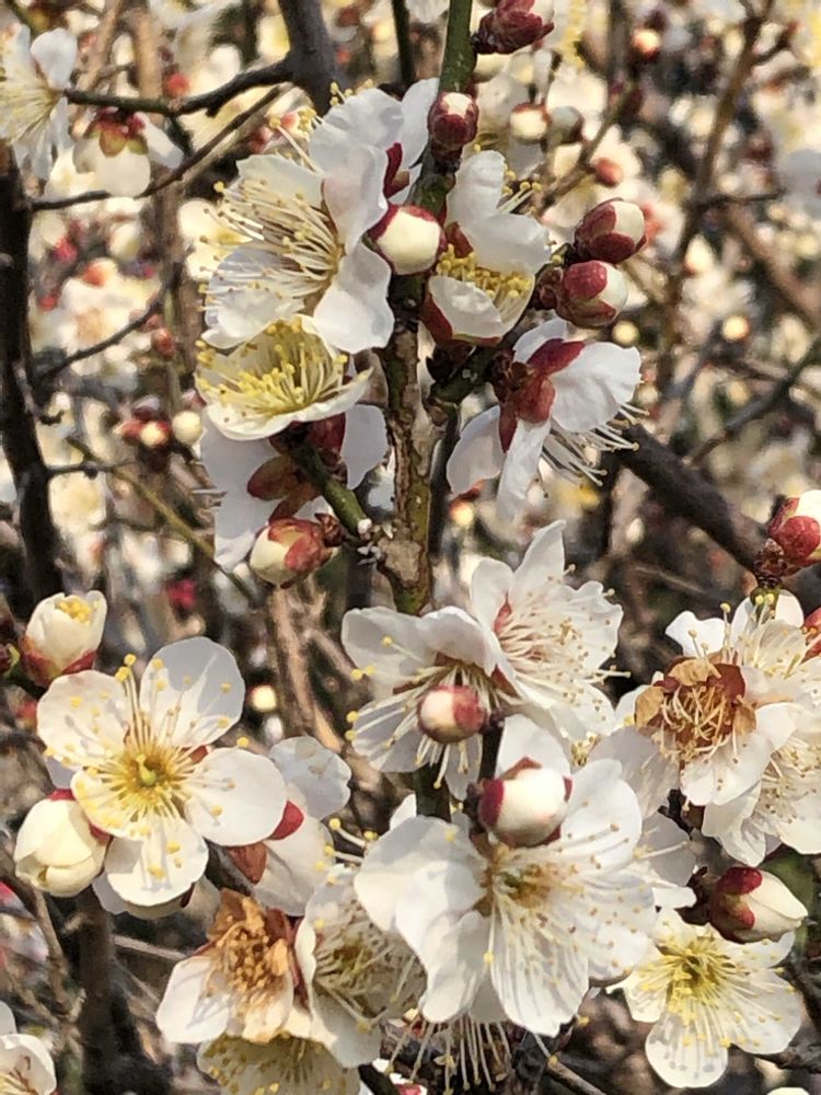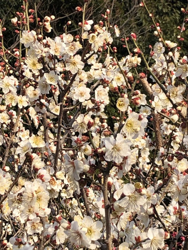 この白い梅のお花「冬至」は、100%満開です。📸🌼😄🤗🌞✌️