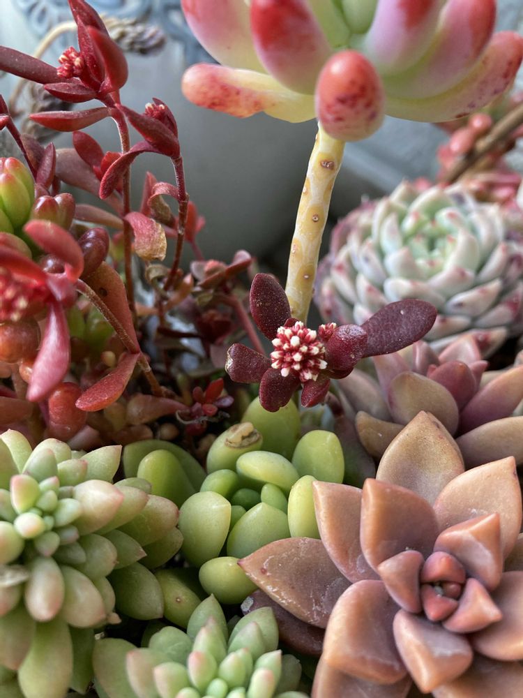 お魚が口を開けた様な形の多肉さんですが、お花がこんなに可愛らしいなんて🌸