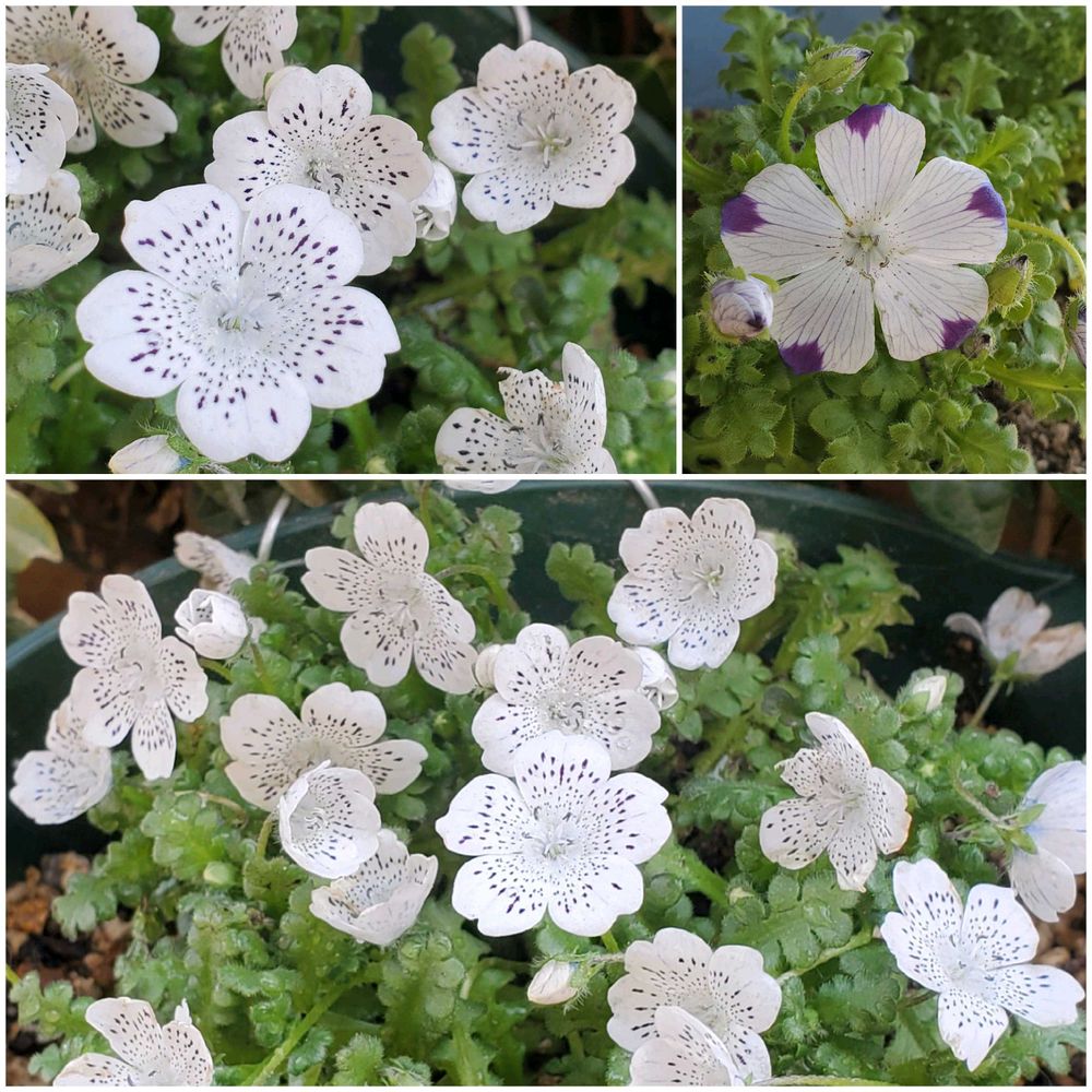 白いネモフィラ そして右上の紫の斑点が入ったネモフィラ可愛いですね💕