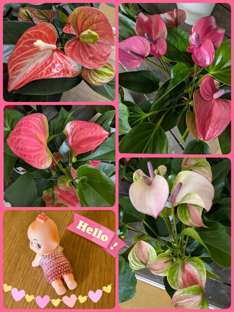 大福のお散歩中に寄る近くのHCに、色んな種類のアンスリウムがあったよ🩷💗🤍❤💚