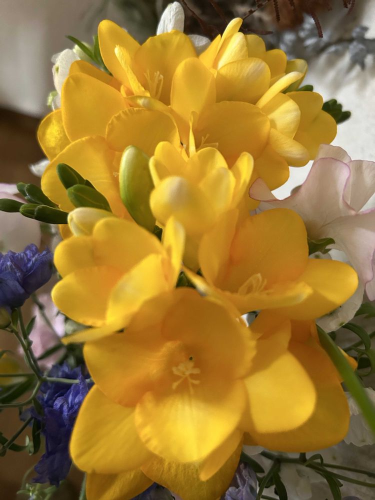 ミモザの蕾もいっぱい💛💛💛地植えのクリスマスローズもやっと目を出しました…部屋ではフリージァの花が満開です💛💛💛💛