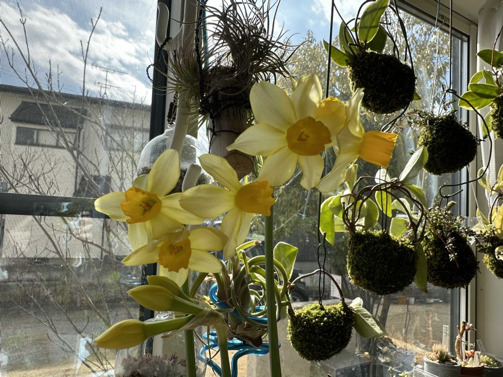 春らしい陽射しが続き、2週間前に購入の芽出し水仙が咲きました。