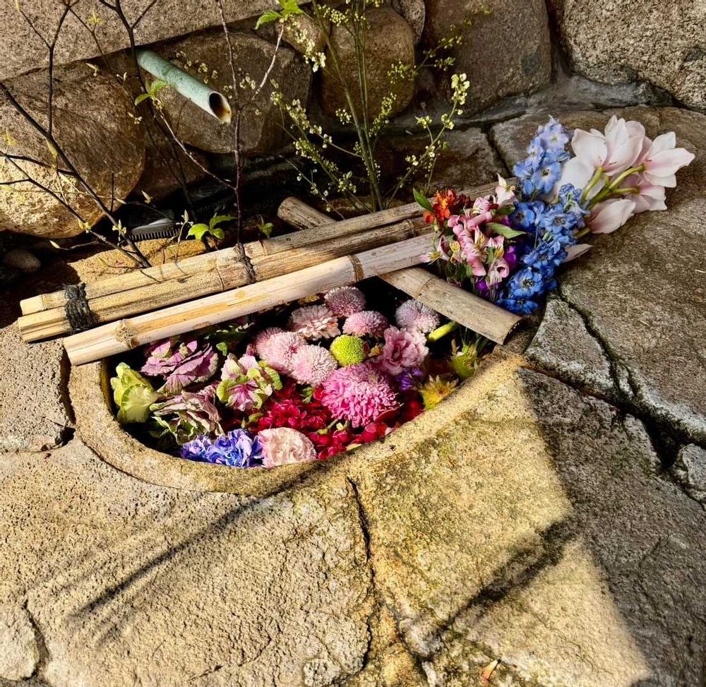 花手水の入れ替えは朝からされてて、夕方も見たらまだ作業中でした😆
