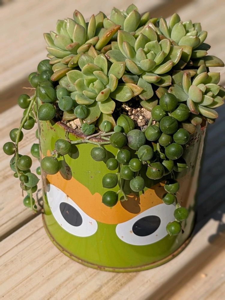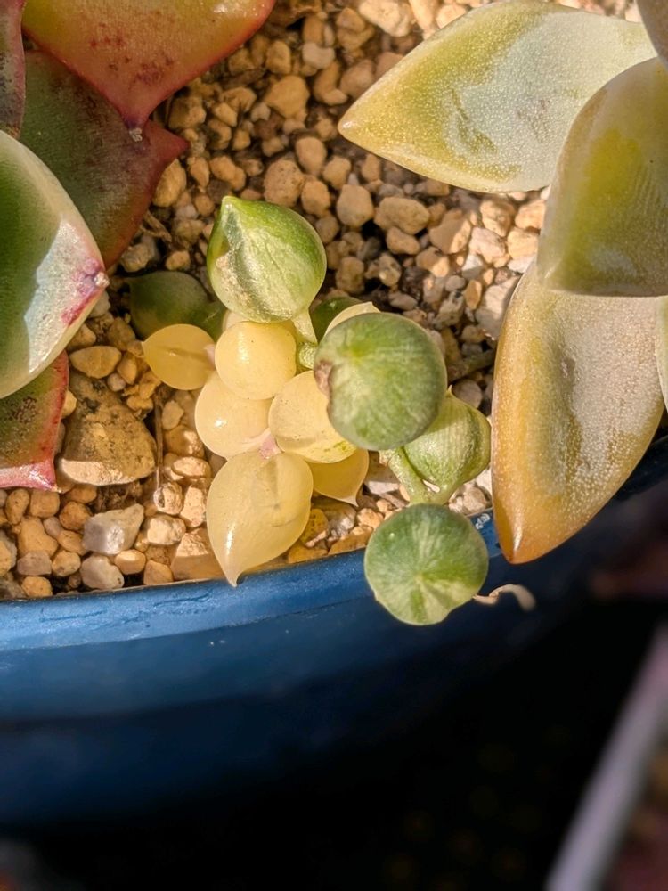 ④斑入りグリーンネックレスさん❣️寄せ植えの中で僅かに生き残ってる子💖斑が多過ぎてこれからが心配😅