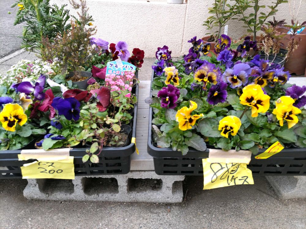 今日午前中、行橋市の ス―パ―たかお店にお花を買いに行きました。パンジー28ポット入りが、800円♥ビオラ、エリカ、オキザリス、アリッサム、その他が、一緒にに入って200円.♥格安なので、即購入しました。