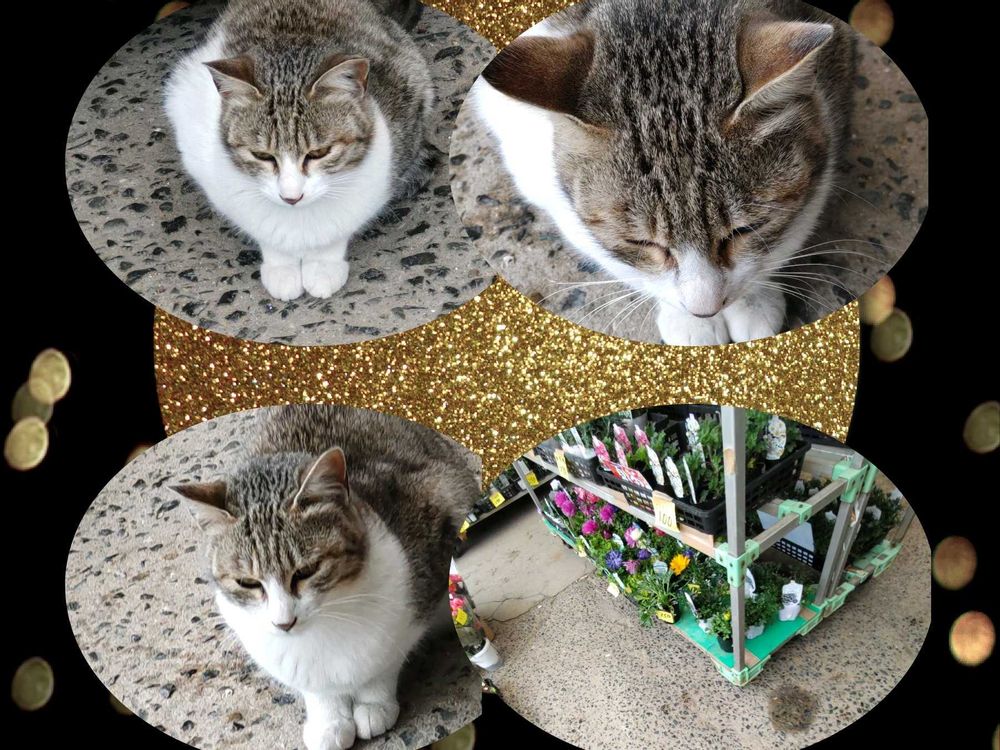 主人は、グリンピースの苗1本70円.を5本で350円♥畑で植えてたのに、ヒヨドリに食べられてしまい、新たに植え直すためです!😆。可愛い看板猫ちゃんがお迎えしてくれました💕🎶。
