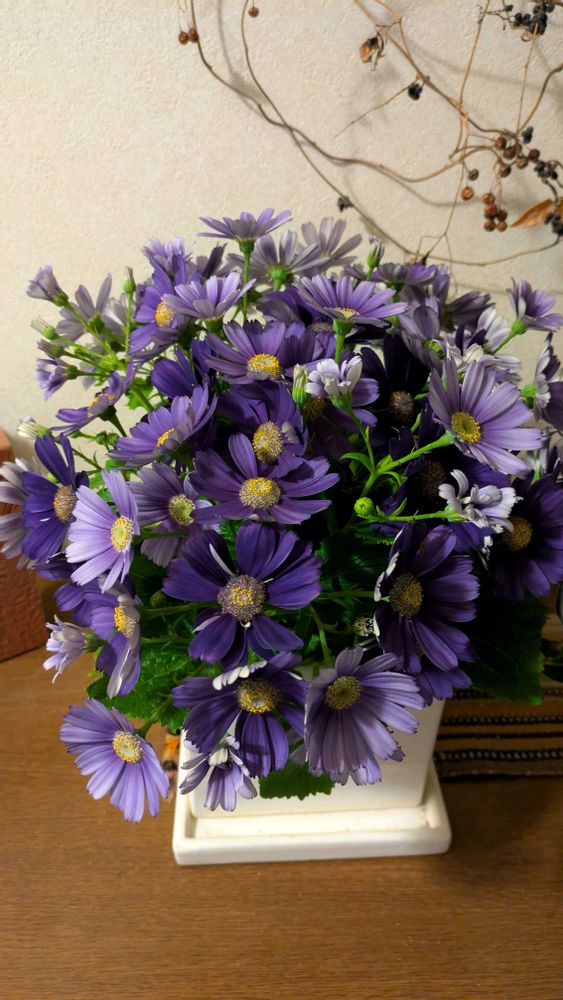 今年はお店のイベントでサイネリアが当たり、玄関に置いてコレが場所が最適らしく綺麗に咲いてます💙☺️💜