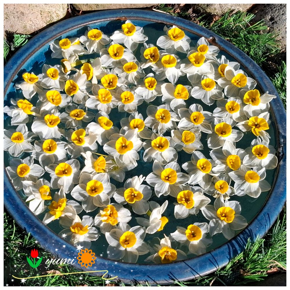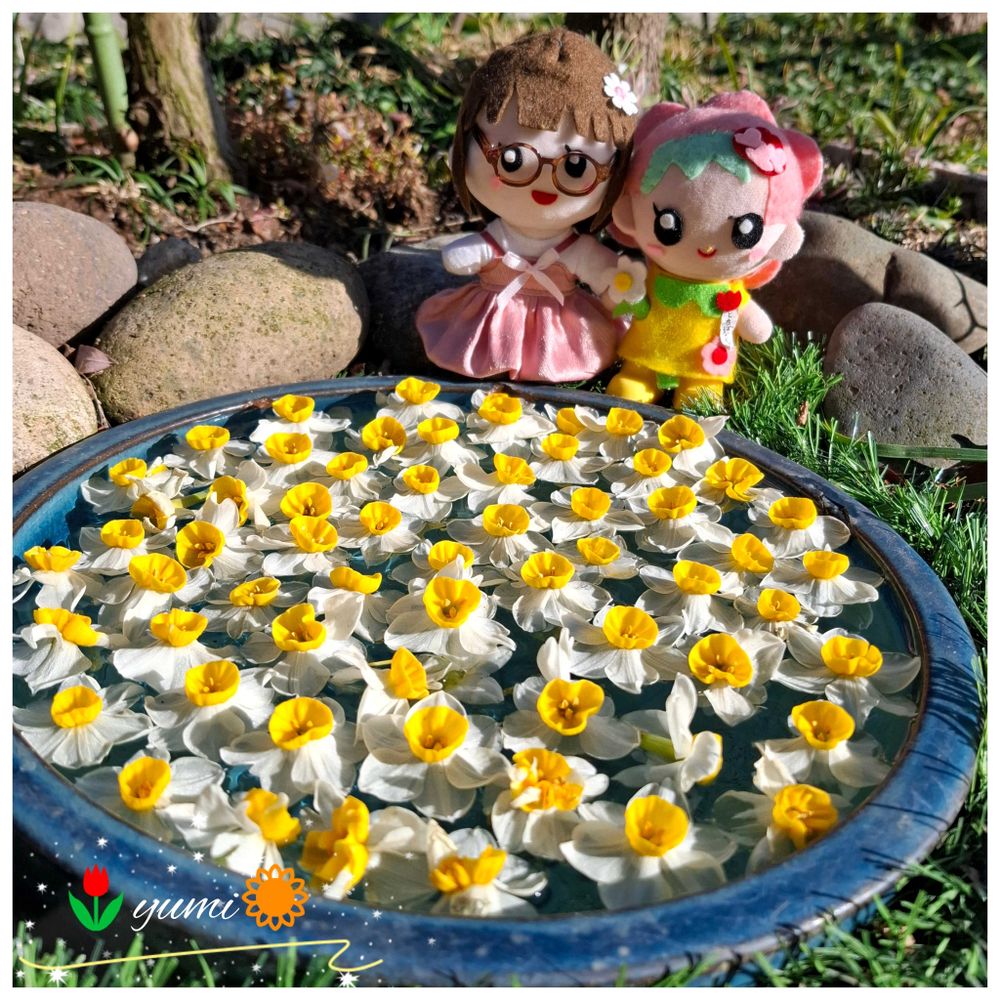 花手水するほどスイセンのお花咲いたのね❣️😍