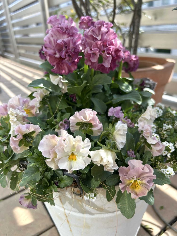 ベランダ,ビオラ 華あられ,フリル咲きパンジー アンティークラッフルの投稿画像