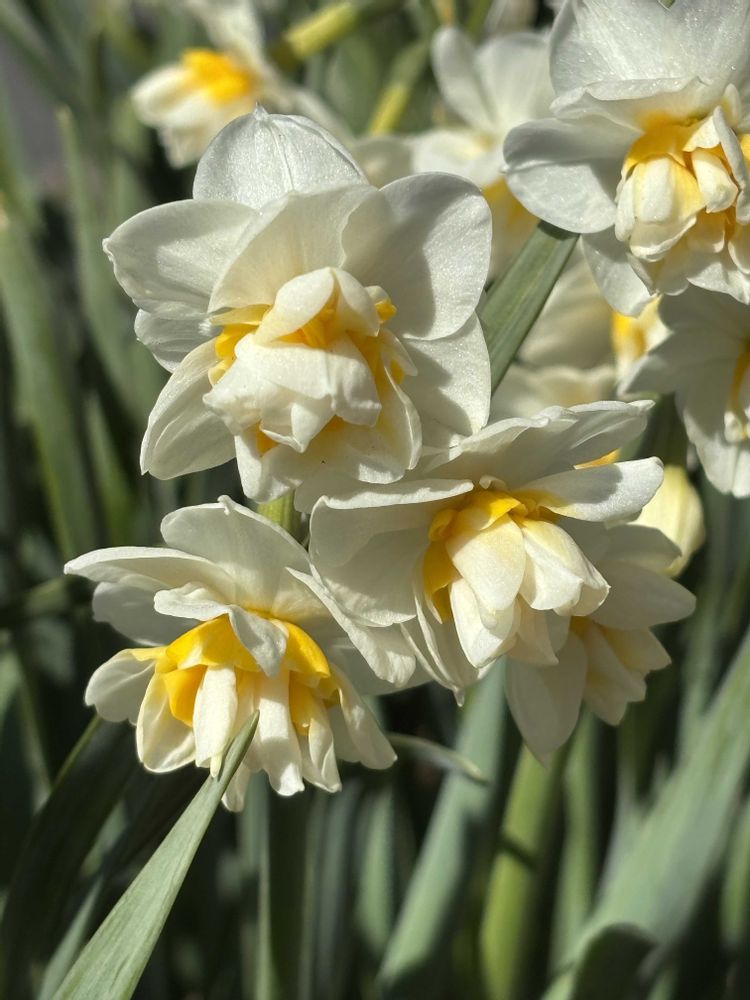 先日、近場を相棒のDAHONと走っていて見つけた水仙です。街路樹の根元にたくさん咲いていました。八重咲きの花の中で、黄色の花が目に飛び込んできました。