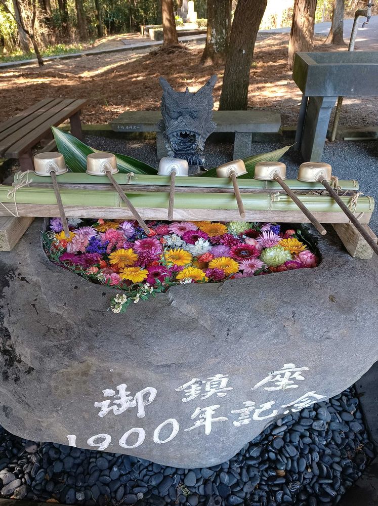 この神社、山野草が多く咲くので年に何回か寄るんだけど、こんな綺麗な花手水初めて見ました。