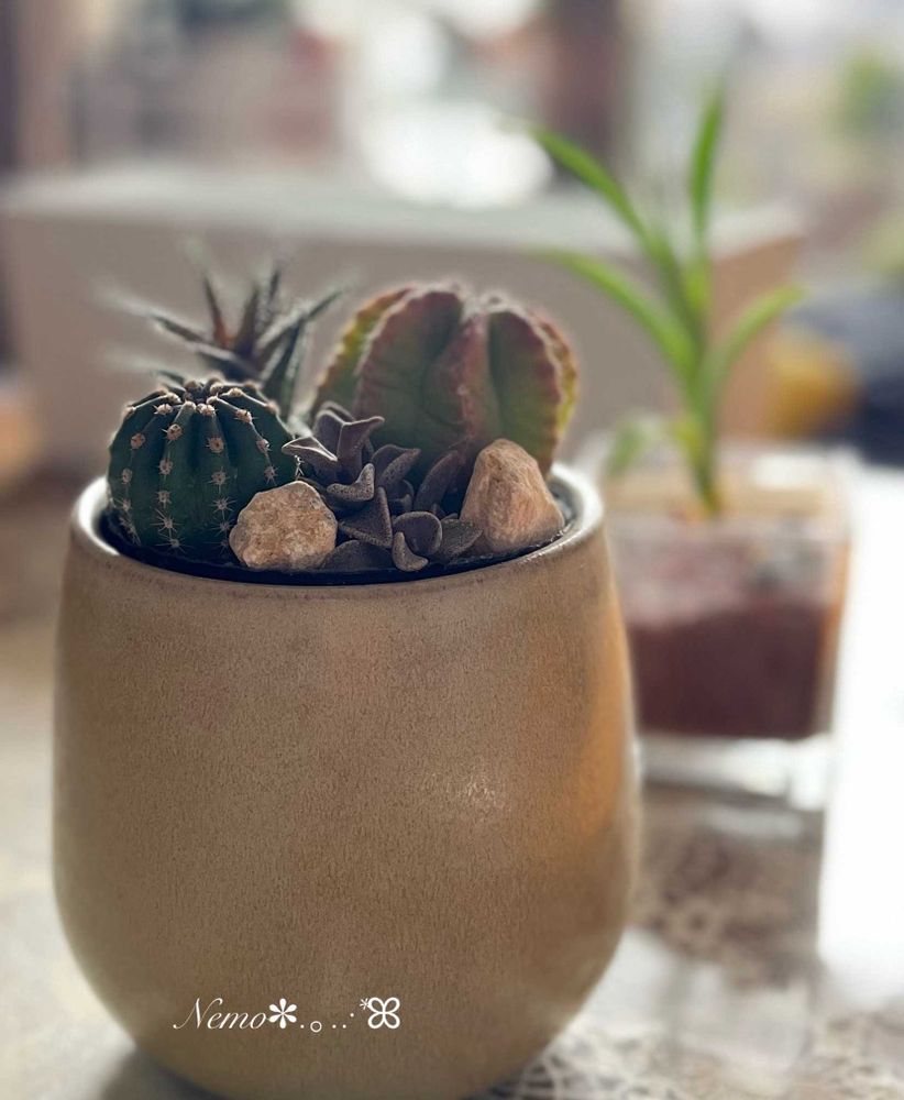 新しい鉢を見つけたのでサボさん入れて見ました、アガベのお子様植えるの忘れてたらノビノビのっぽになってたわ〜💕.・*’’*・.♬