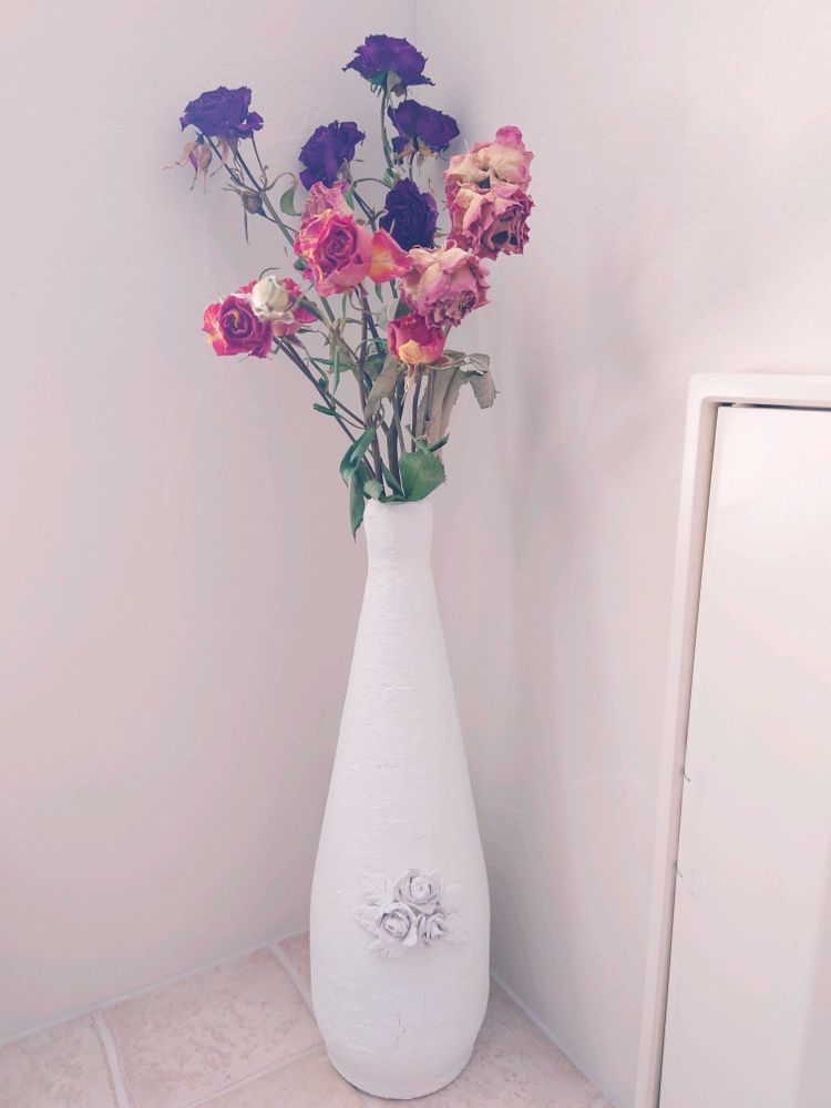 花瓶に活けてたバラが勝手にドライフラワーになったので…久々にお気に入りの自作花瓶のお花をリニューアル🌹