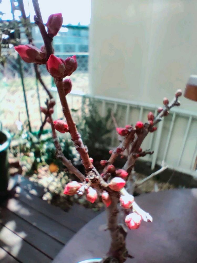 近くの梅林は満開なのにウチのはまだまだっポイ😅